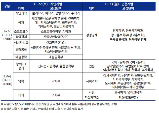 *고대 계열별 모집단위별 논술고사 일정