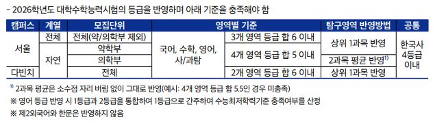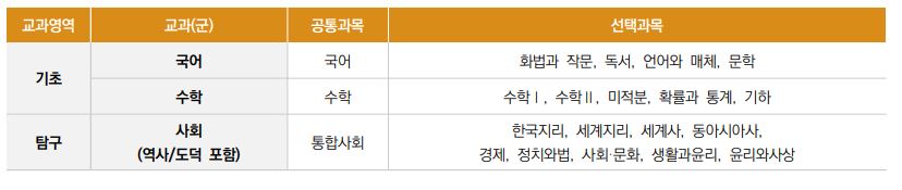 탐구영역은 1개 과목만 반영하며 과학탐구, 사회탐구를 모두 인정함.