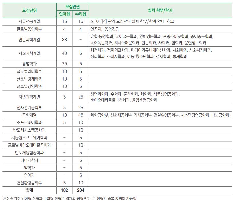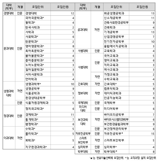 * 성대 논술 모집단위 및 모집인원