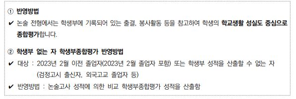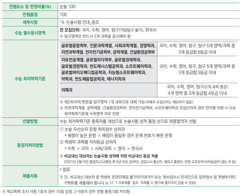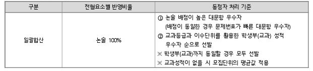 *동점자 처리기준 : ① 논술 번 문항 점수 우수자 ② 위 처리 기준상에도 동점일 경우 모두 선발