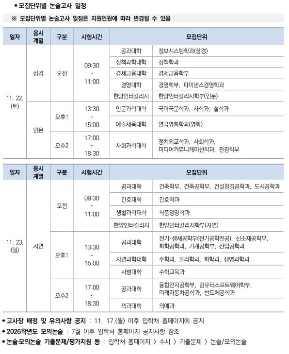 *한양대 논술 세부일정