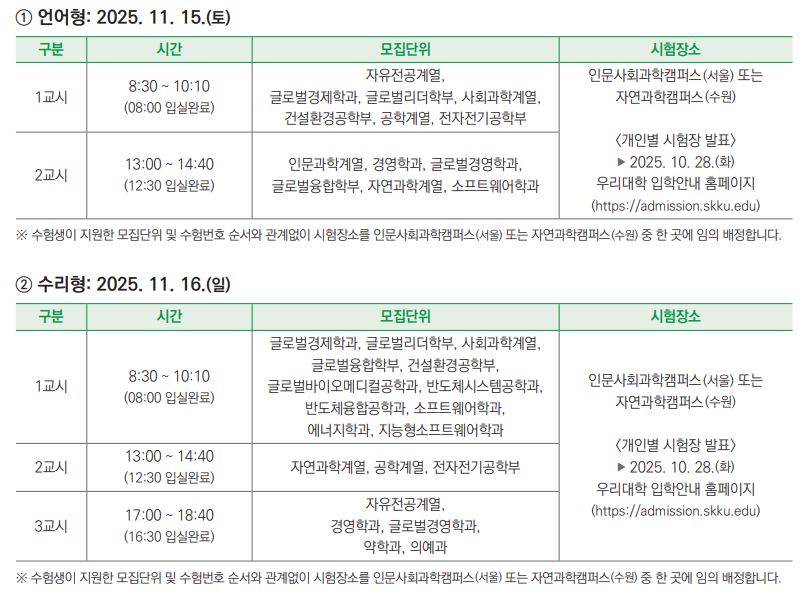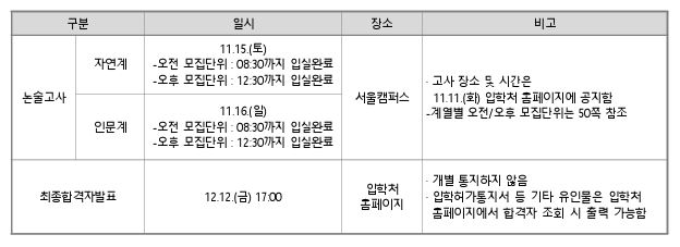 *성대 논술 세부일정