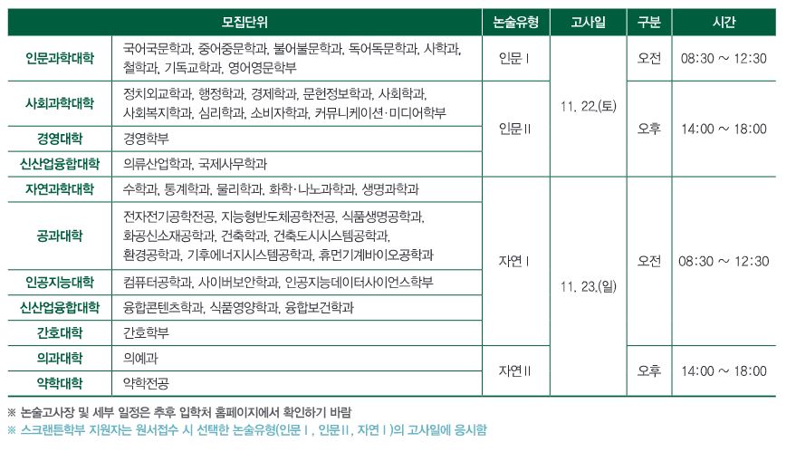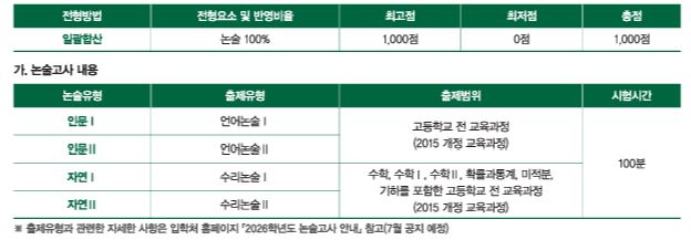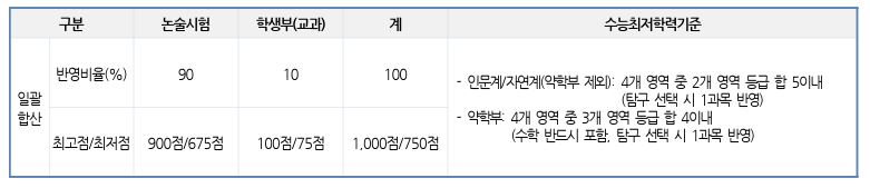 *논술 범위 : 인문사회계- 통합교과형 / 자연계- 수1, 수2