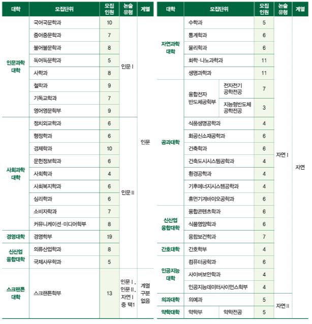 *숙명여대 모집단위 및 인원 : 논술 총 214명