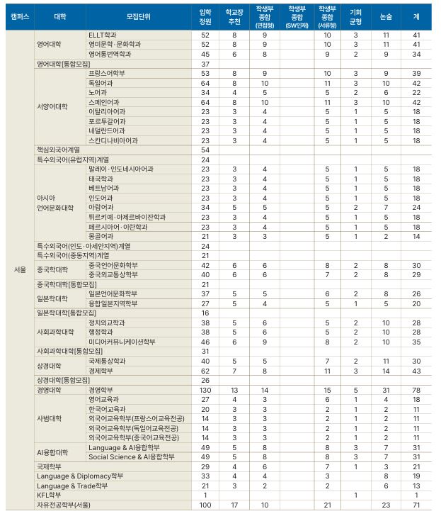*한국외대 모집단위 및 모집인원 : 논술 총 468명