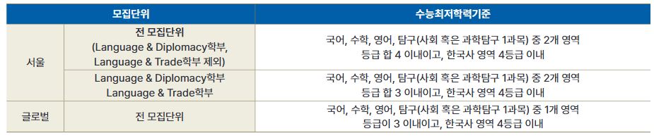 *한국외대 논술 수능최저학력기준