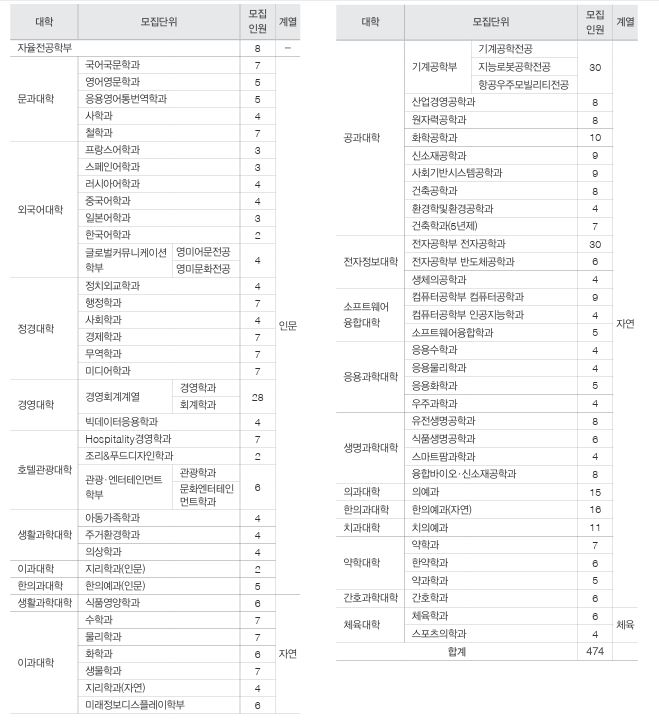 *경희대 논술 모집단위 및 모집인원 : 총 474명